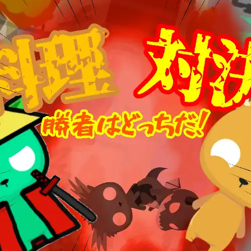 サムネ制作依頼新キャラ(にちしさんの草もん)と料理対決の茶番のサムネイル制作を頼みますだれかお願いします!